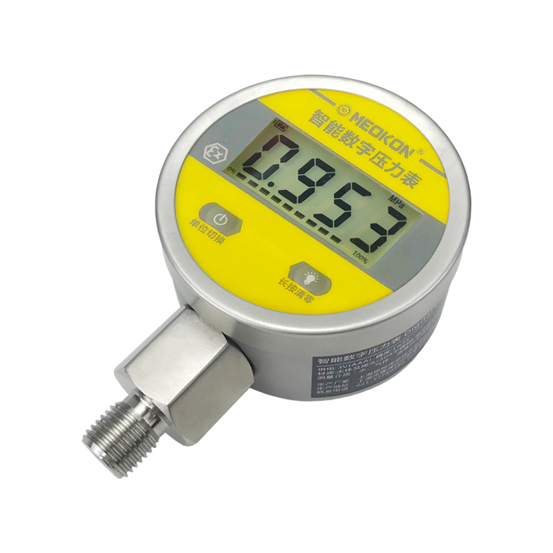 該數(shù)字壓力表配備LCD液晶顯示屏,具有清零、背光、開關(guān)機、單位切換、低電壓報警等多種功能,操作簡單,安裝方便。產(chǎn)品采用304不銹鋼殼體和接頭,抗震性好, 能夠測量氣體、液體、油等對不銹鋼無腐蝕的介質(zhì)。